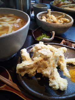 いい香りの牛蒡天ぷらと、もっちもちのおうどん♪